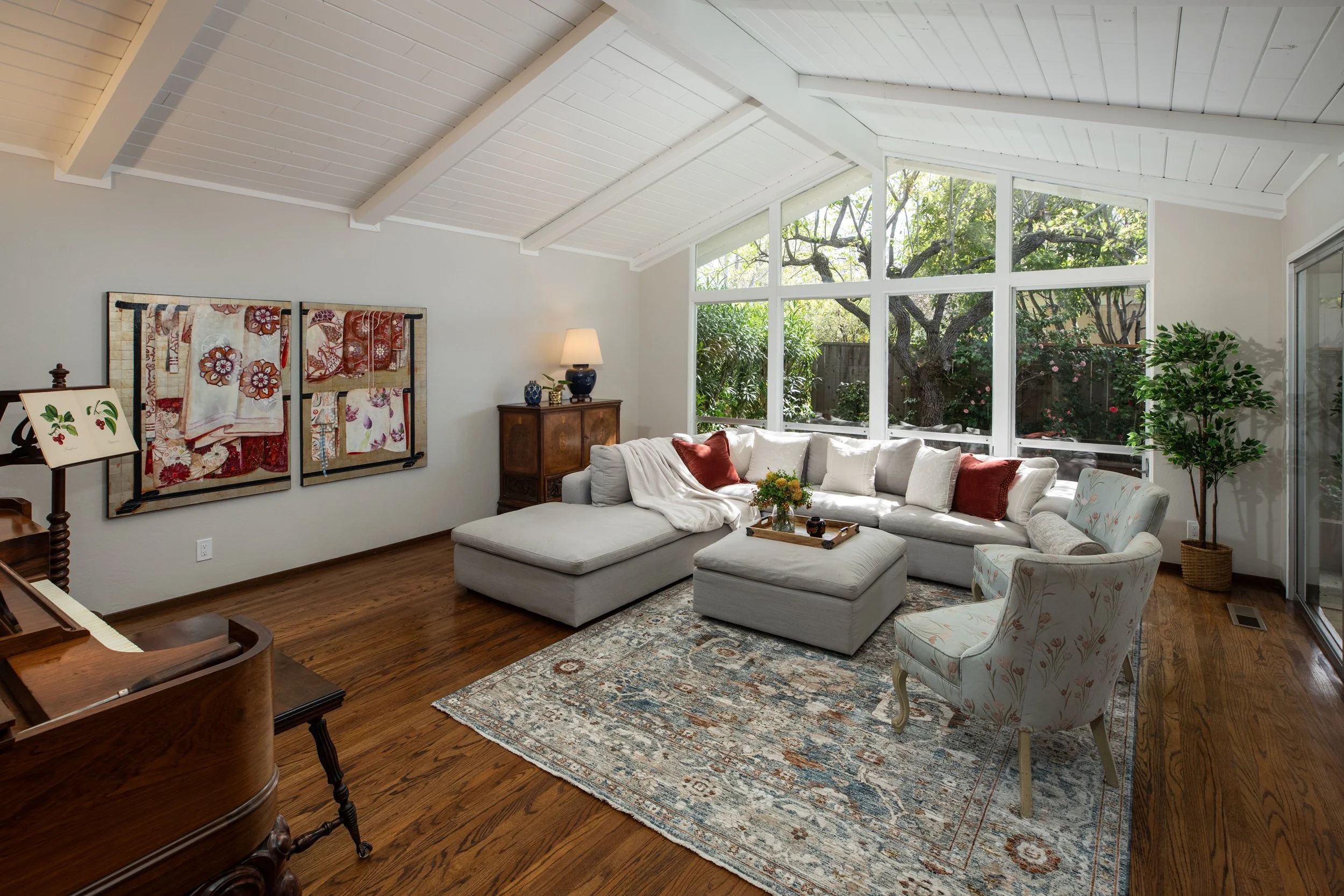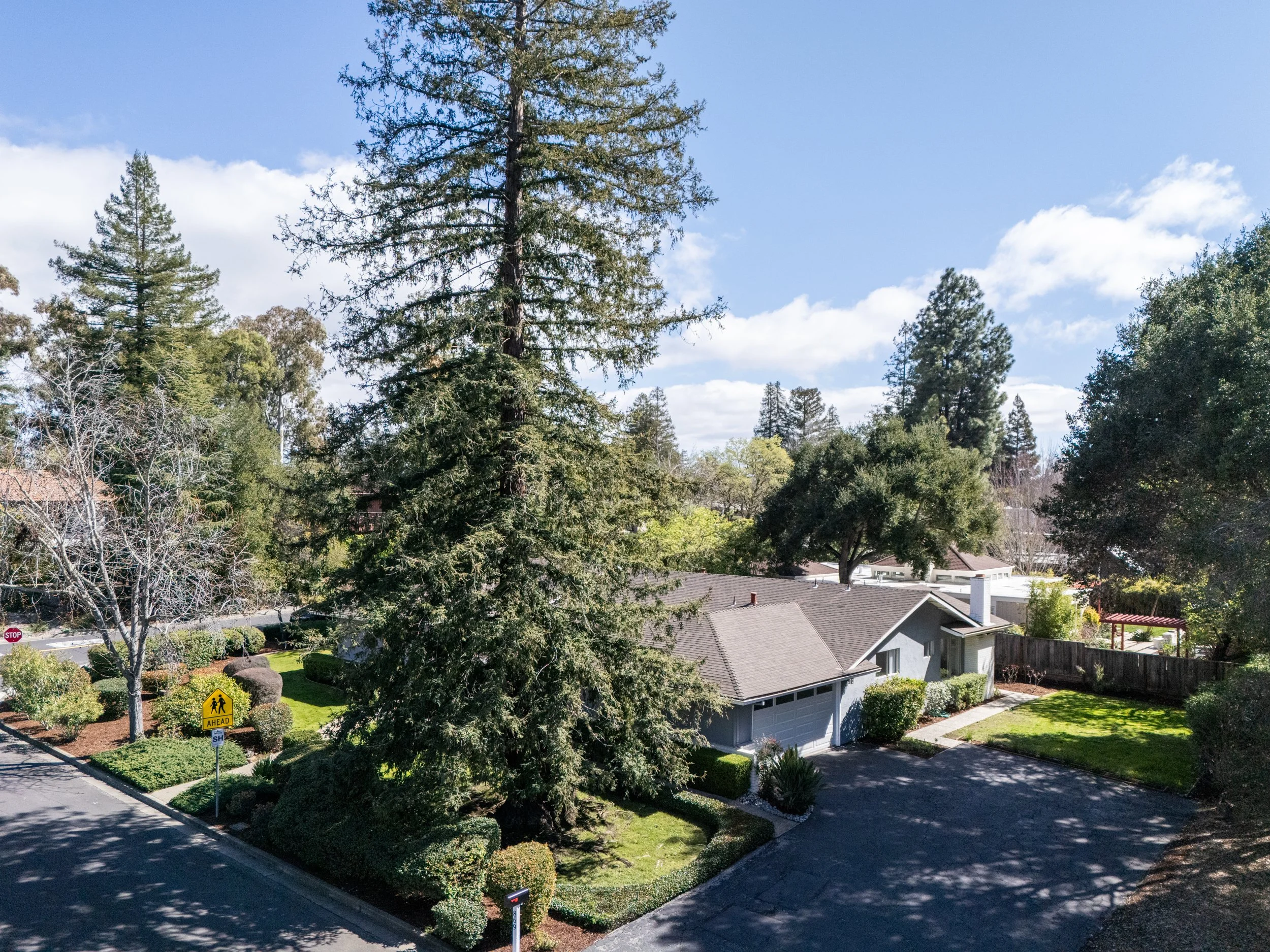 This gorgeous 4 bedroom, 2 bath home, located in a highly desirable, quiet neighborhood of the Stanford campus, is just minutes to the central campus, the Stanford Dish trail and downtown Palo Alto. The location also affords access to award winning Palo Alto schools, including Lucille L. Nixon Elementary School, which is just a short walk away. The front door to the house, reached via an enclosed courtyard, opens into a spacious living room with vaulted ceiling and high windows, with a view out to a mature garden and covered patio. Occupied by the original owner, the renowned director of the Stanford Band Arthur P. Barnes and his family, the size and expansive layout of this house has been the perfect backdrop for many elegant musical gatherings.