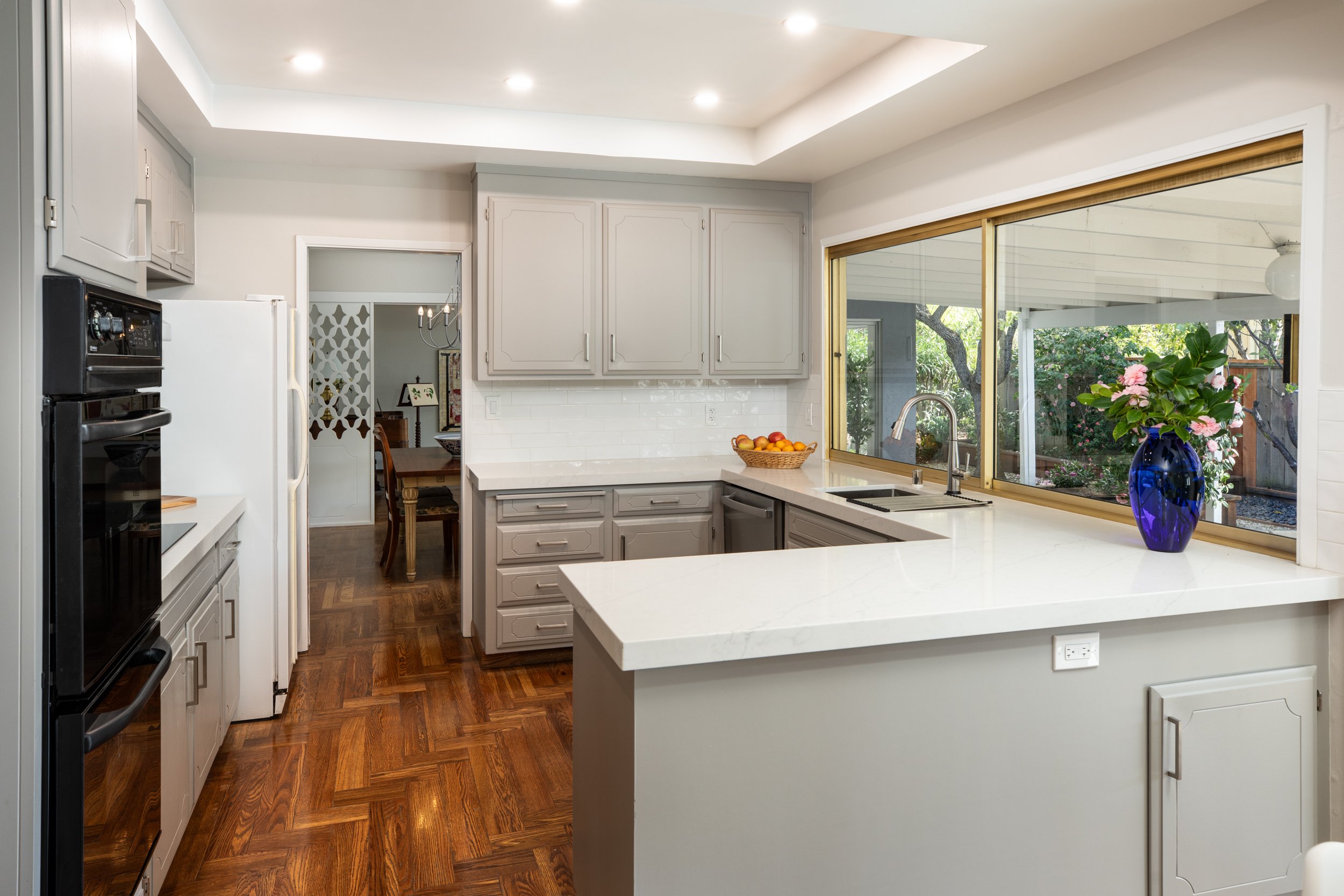 New quartz countertops installed in kitchen, family room and hallway desk.